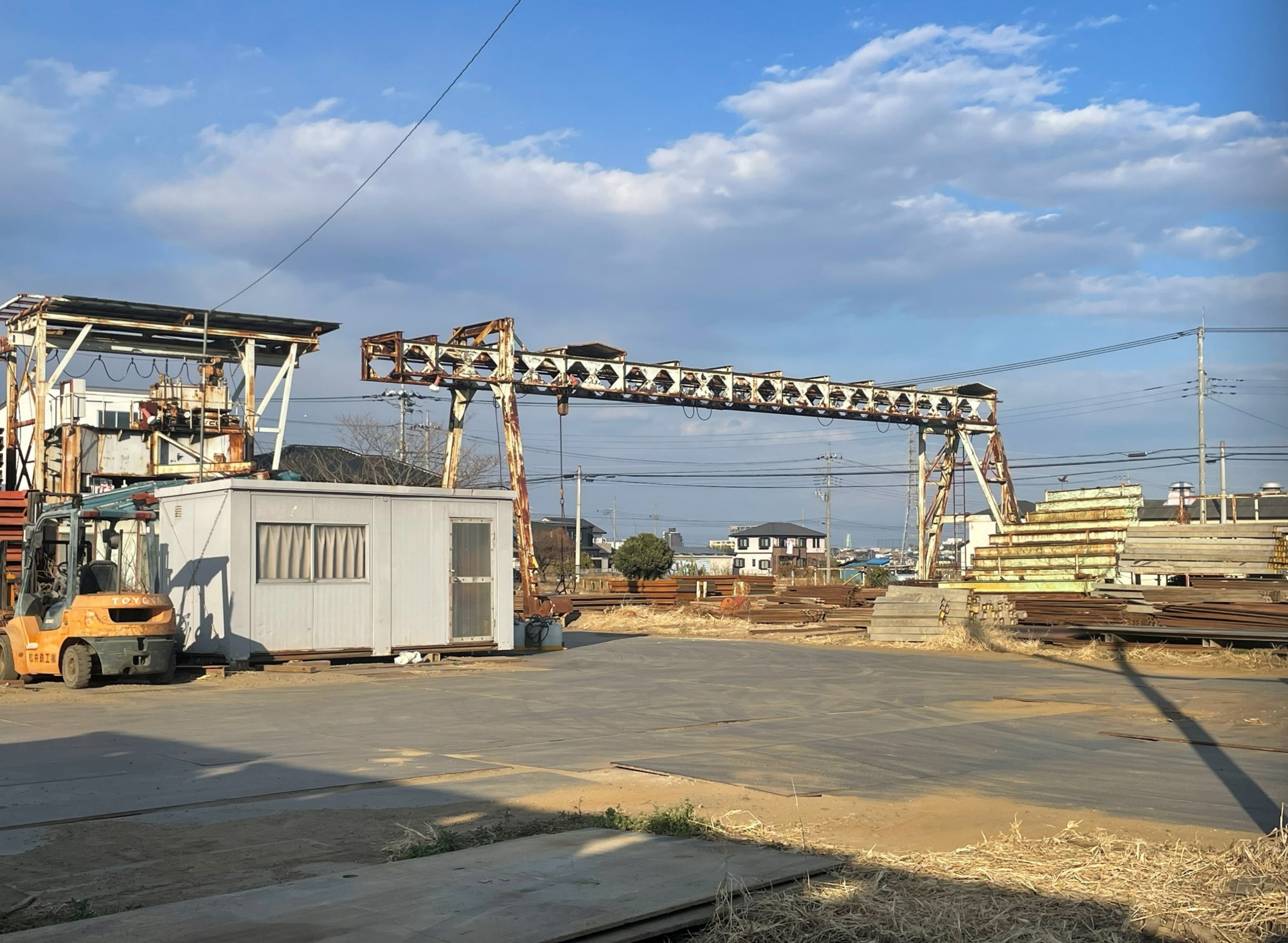 敷地内は大型車両侵入可能で、機材搬入にも対応出来ます。アーク溶接設備、フォークリフトを保有し、有資格者も在籍しているので簡易加工の相談も可能です。