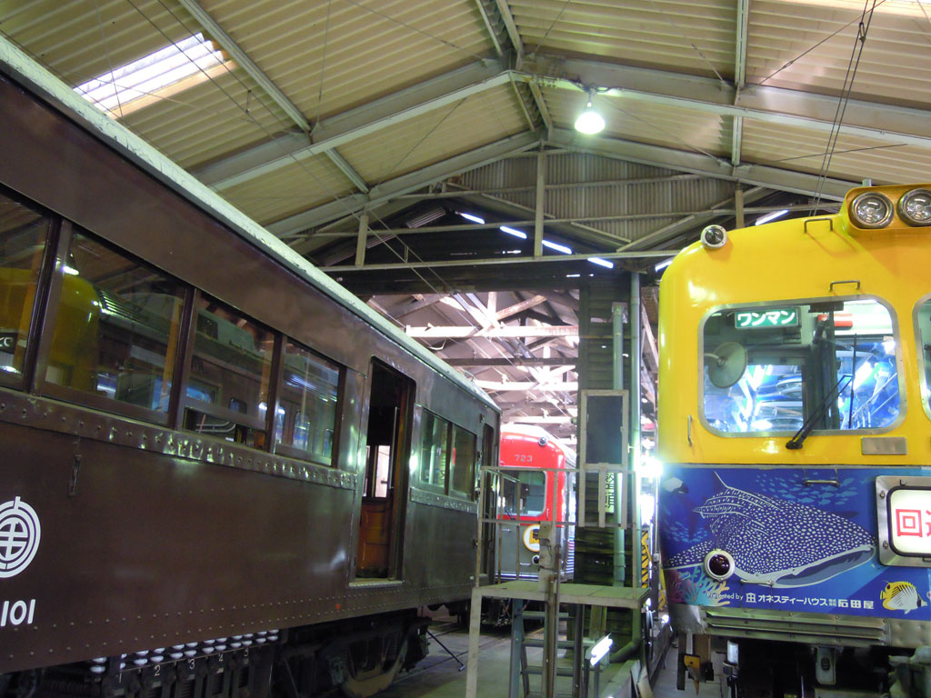 大胡駅構内にある大胡電車庫は開業当時に建てられ、国の登録有形文化財。